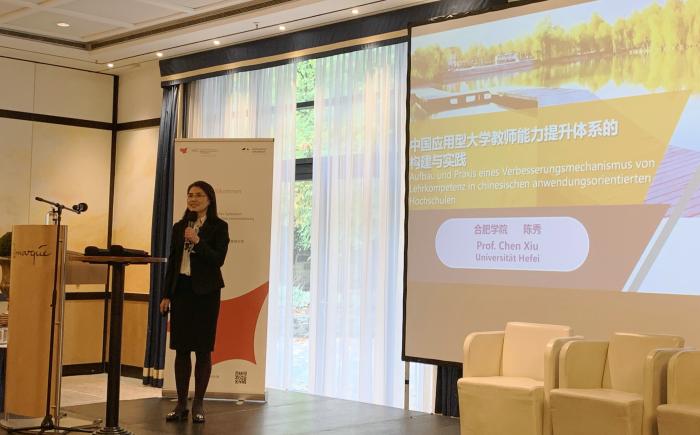 Als Direktor der International Exchange Branch der angewandten Universitäten der China Education Association for International Exchange des Bildungsministeriums, teilt die Universität Hefei aktiv Ressourcen der Bildungskooperation in Europa und leitet andere chinesische angewandte Universitäten bei der akademischen Forschung und der internationalen Zusammenarbeit an, um die akademische Forschung und den Austausch von international angewandter Hochschulbildung zu fördern, das gegenseitige Lernen und die Entwicklung von angewandten Hochschulen in China und Europa voranzutreiben, den Aufbau der neuen angewandten Hochschulen in China umfassend zu beschleunigen. Vom 20. bis 29. Oktober veranstaltete die Universität Hefei nach dem Plan des Bildungsministeriums und der China Education Association for International Exchange gemeinsam mit den einschlägigen Hochschulen und Hochschulallianzen in Deutschland, der Schweiz und Italien „Das zwölfte Deutsch-Chinesische Symposium zur angewandten Hochschulbildung“ „Das vierte Schweizerisch-Chinesische Symposium zur angewandten Hochschulbildung“ und „Das Italienisch--Chinesische Symposium zur angewandten Hochschulbildung“ drei internationale akademische Symposien durch. Die stellvertretende Generalsekretärin der China Education Association for International Exchange Frau Dr. Zhou Yan als Delegationsleiterin, Vorsitzender des Application-oriented Universities Committee of China Education Association for International Exchange (CEAIE-AUC) und Professor an der Universität Hefei Prof. Dr. Cai Jingmin als akademischer Leiter der Delegation, und 38 Vertreter aus 21 chinesischen Institutionen bildeten die chinesische akademische Delegation für Angewandte Hochschulbildung.