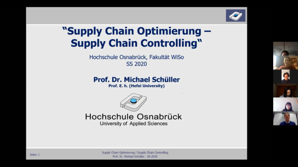 Am Montag, dem 9. März, um 7.50 Uhr (MESZ) bzw. 14.50 Uhr (Pekinger Zeit) eröffneten die Studenten der Abteilung für Wirtschaft and Management am Tisch zu Hause aufgeregt die Videokommunikationsplattform Zoom und betraten den Online-Unterrichtsraum, der von den chinesischen Lehrern organisiert wurde. Zu dieser Zeit betrat Prof. Dr. Michael Schüller, Leiter des LOGinCHINA-Programms, der sich in der mehr als 10.000 Kilometer von Hefei entfernten deutschen Stadt Osnabrück befindet, den Raum auch. Nachdem er die Unterrichtsmaterialien auf die Plattform hochgeladen und die Live-Übertragung getestet hatte, begann das Sommersemester im Jahr 2020 von dem Studienjahrgang 2017 der Abteilung für Wirtschaft and Management online pünktlich.