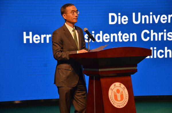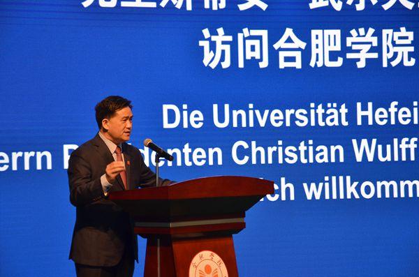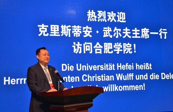 Präsident Wulff als Botschafter von der chinesischen und deutschen Freundschaft leistet einen großen Beitrag zur freundlichen Beziehung zwischen China und Deutschland und fördert die Zusammenarbeit und den Austausch zwischen der Provinz Anhui und Niedersachsen. Er beachtet darüber hinaus auch sehr den Aufbau und die Entwicklung der Universität Hefei. Während der Konferenz der Weltfertigungsindustrie 2018 besuchte Präsident Wulff noch einmal unsere Universität, was sowohl die tiefe Freundschaft zwischen der Provinz Anhui und Niedersachsen, als auch seine Fürsorgegegenüber unserer Universität zeigte.