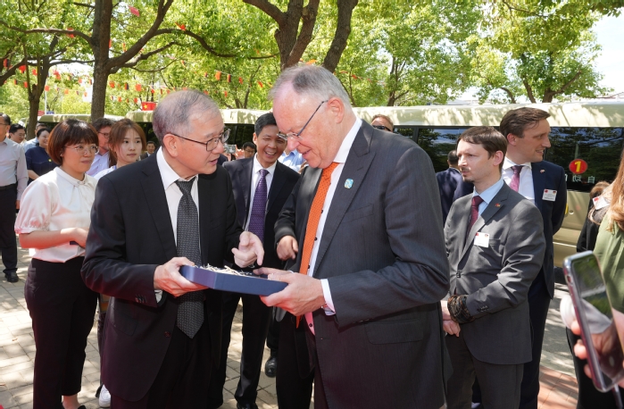 Wang Qidong, Sekretär des Parteikomitees der Universität Hefei, begrüßte Ministerpräsident Stefan Weil und seine Delegation vor dem Deutsch-Chinesischen Freundschaftswald. Im Namen der Uni schenkte Wang Qidong Weil ein Video-Souvenir zum 30. Jahrestag der freundschaftlichen Verbindung zwischen Anhui und Nidersachsen. Weil sagte, dass er viele alte Freunde hier hat und stolz auf ihre Bemühungen um gesellschaftlich-kulturellen Austausch ist.